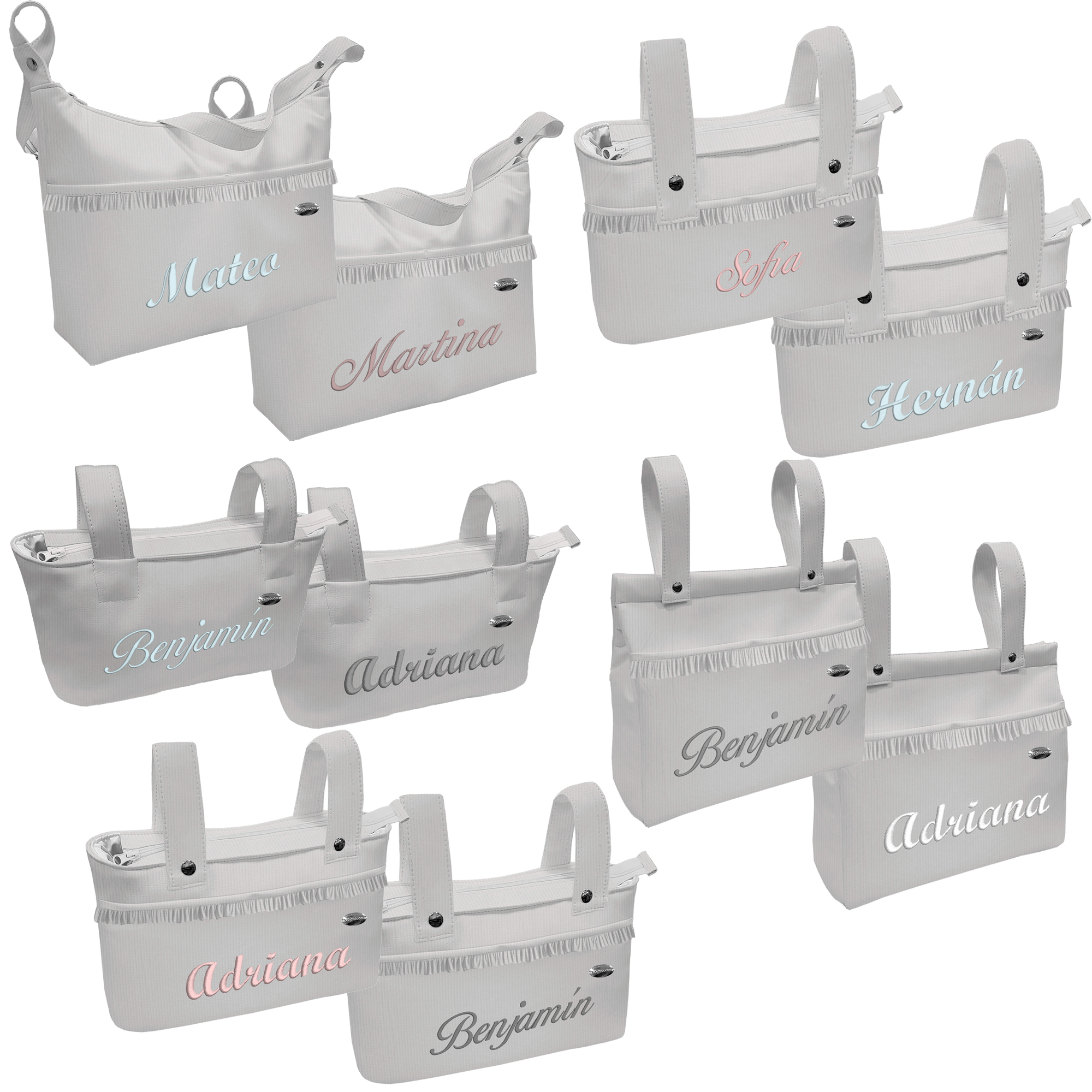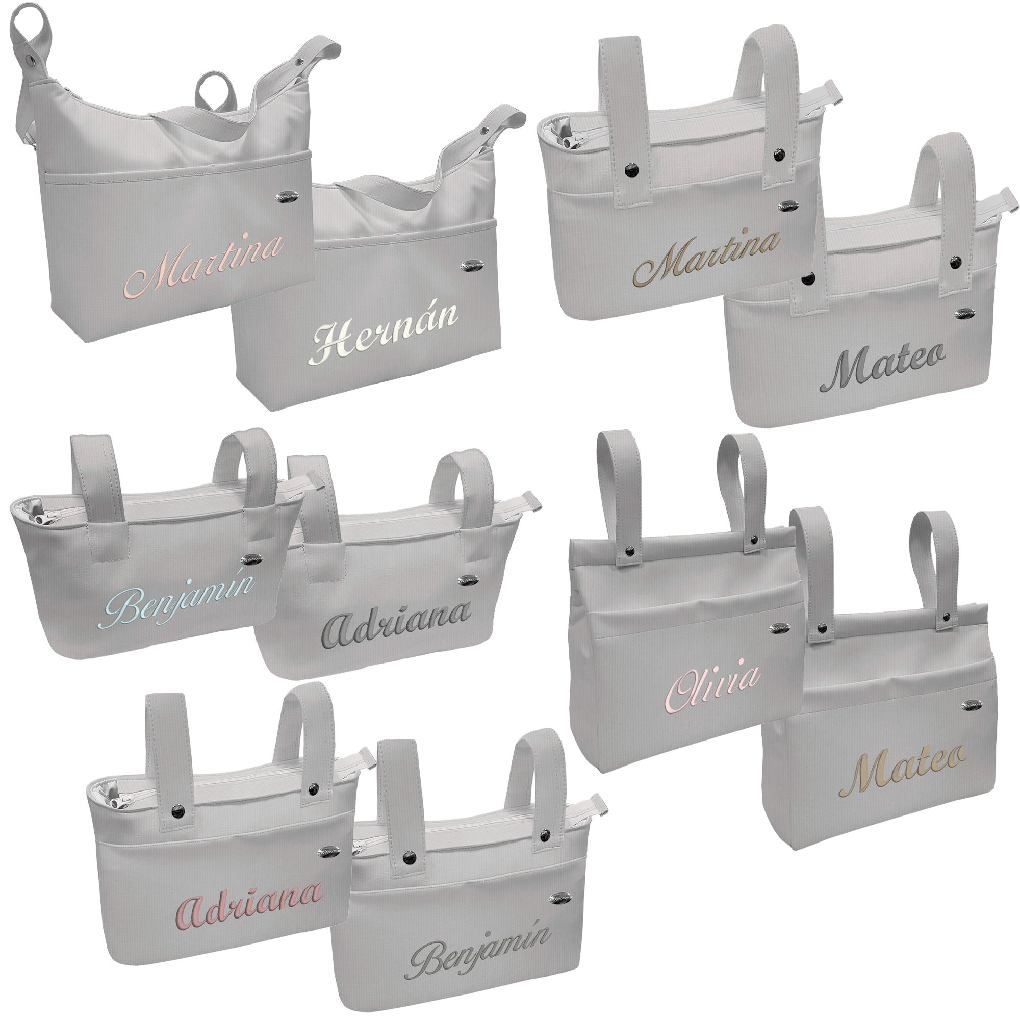 Se sujeta al carrito mediante broches de presión en el asa. Esta asa es muy larga y regulable para llevar al hombro.