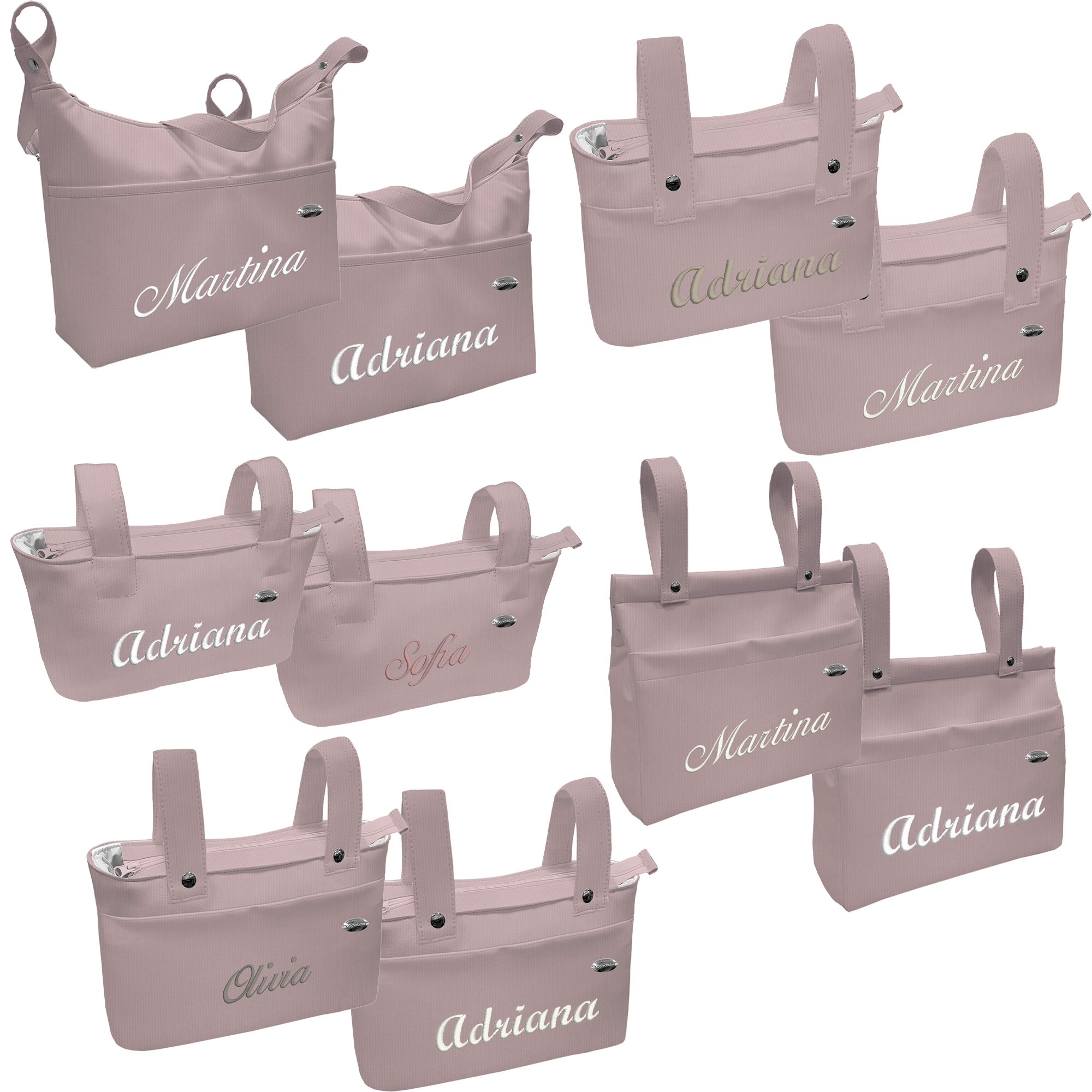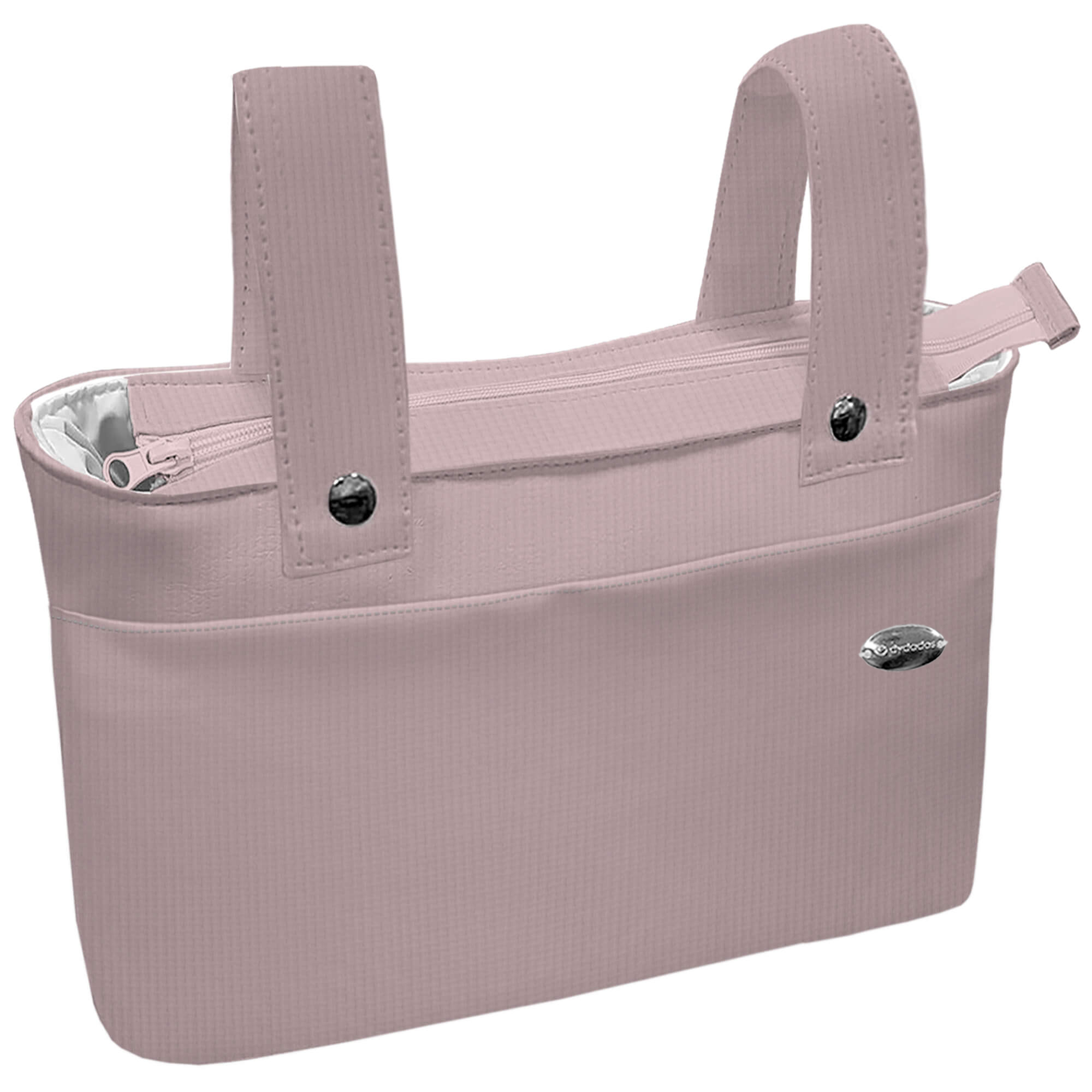 Se sujeta al carrito mediante asas con broches de presión. Asa larga para cuando quieres usar el bolso para llevar al hombro.