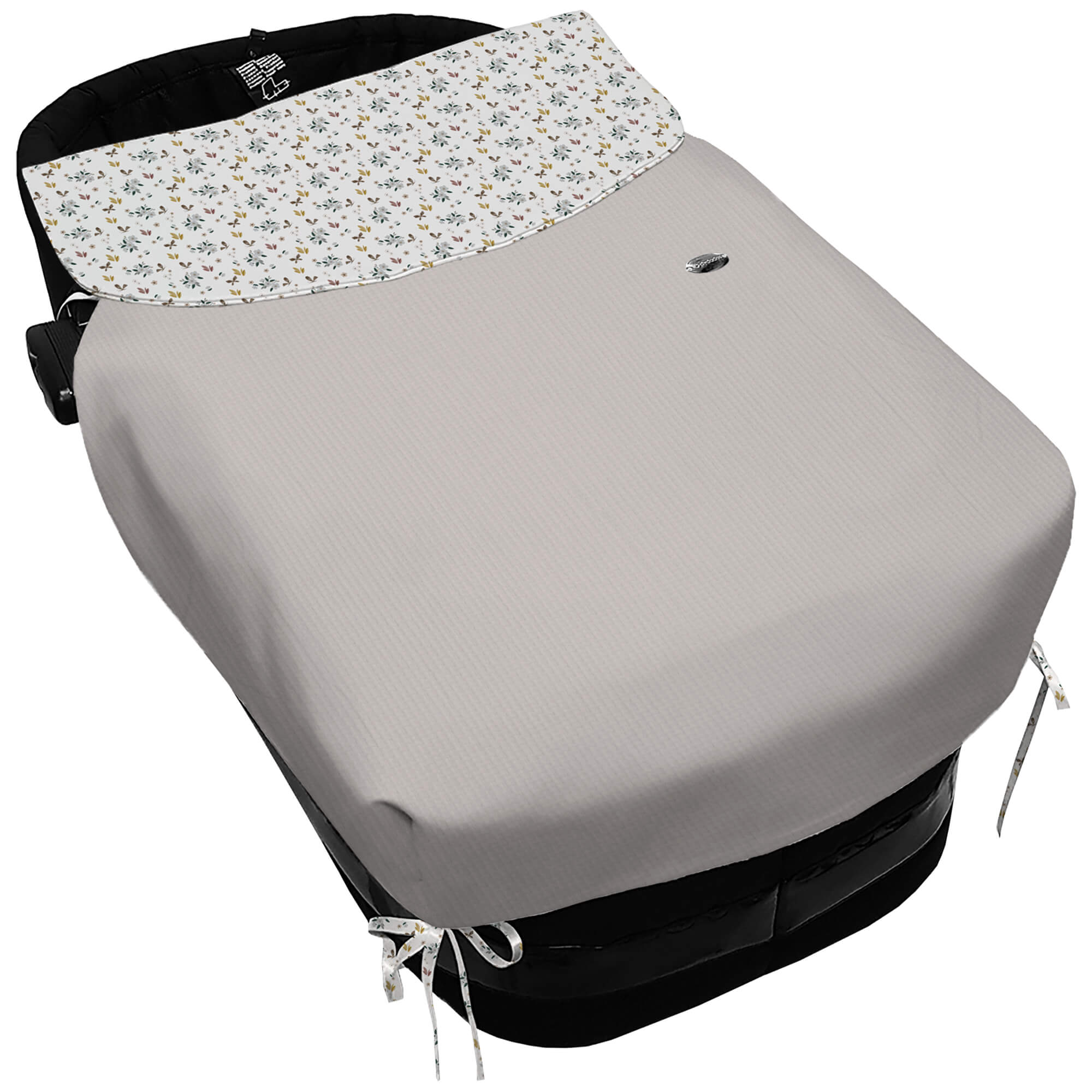 3. Tapa del saco en el mismo tejido que la funda, se une a la funda mediante cremalleras laterales, siempre al tono, que puedes abrir como necesites o quitar completamente para usar la funda como colchoneta de capazo. El relleno es micro fibra hueca para mayor confort del bebé y muy buena transpirabilidad.